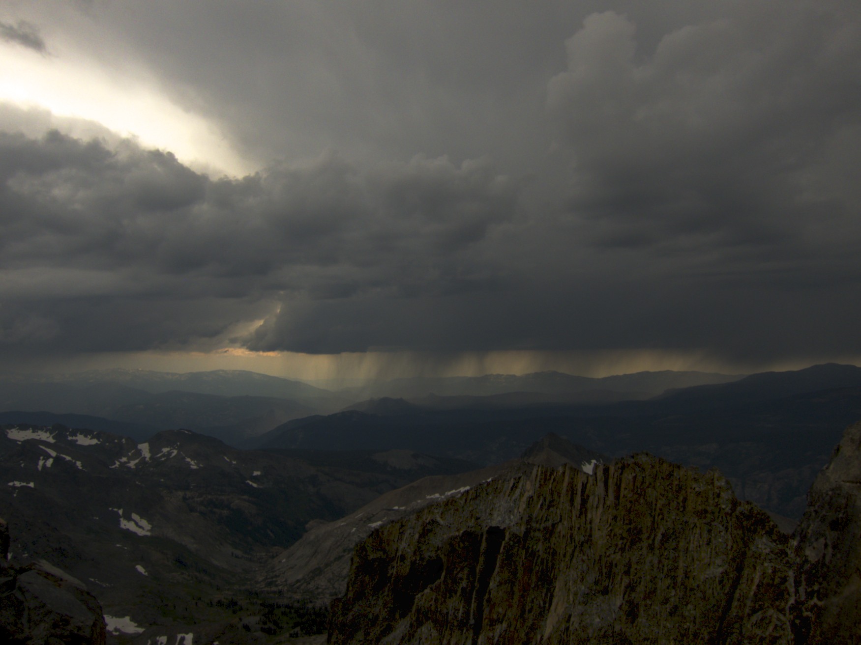 The weather forecast for this trip wasn’t the greatest. Seems like there is always a slight chance of rain in the Sierra’s, but the forecast was showing the chance of precipitation building up to 70% for the day of our climb. We rolled into the Mammoth Lakes area around noon, got our permit, some lunch and hung out in town. Around 2pm a storm rolled through bringing some rain with it. Nothing major so we stayed on course to hike in the following day.